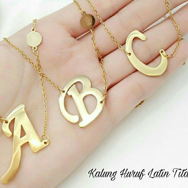 Kalung Huruf Titanium Gold 925 Lapis 24k Kalung Wanita Kalung Emas Kalung Kpop Kalung Pipih Shopee Indonesia